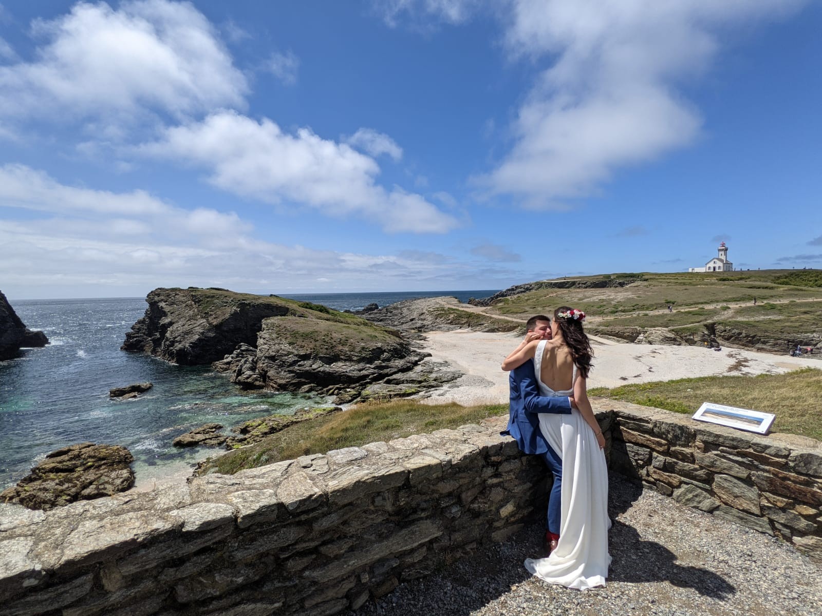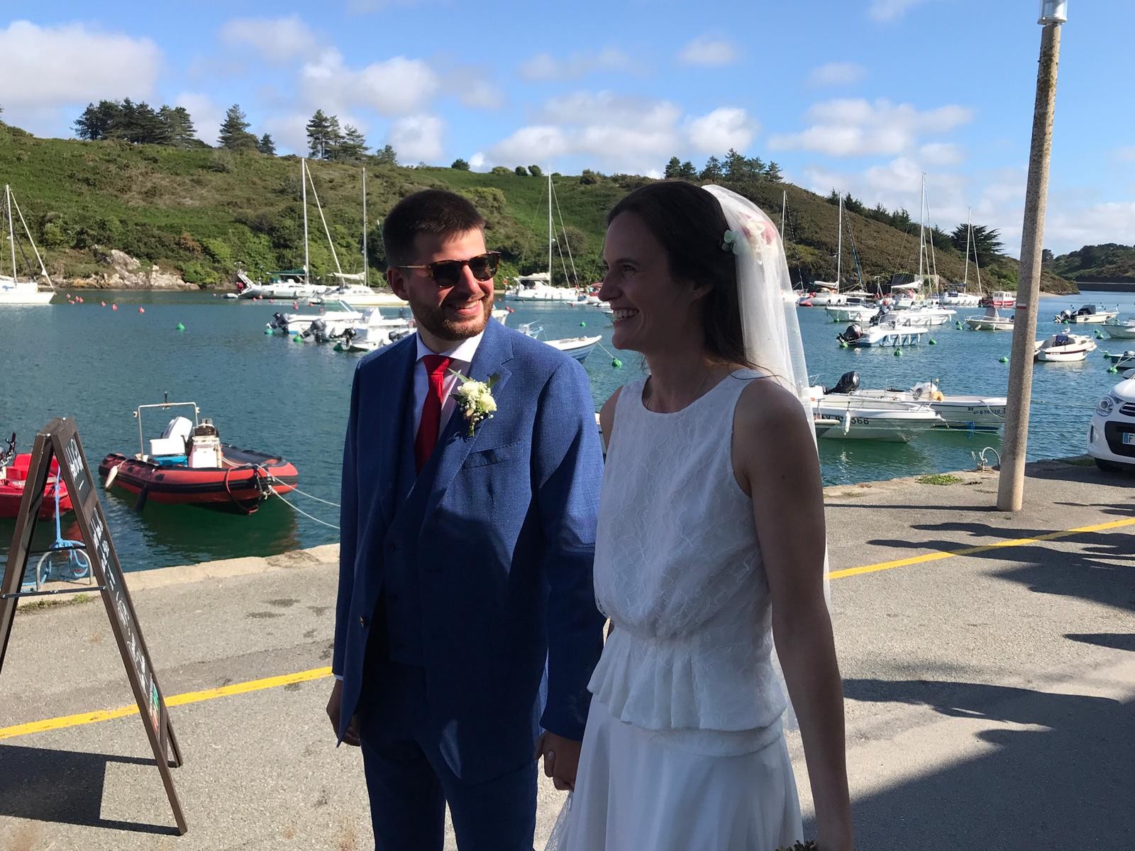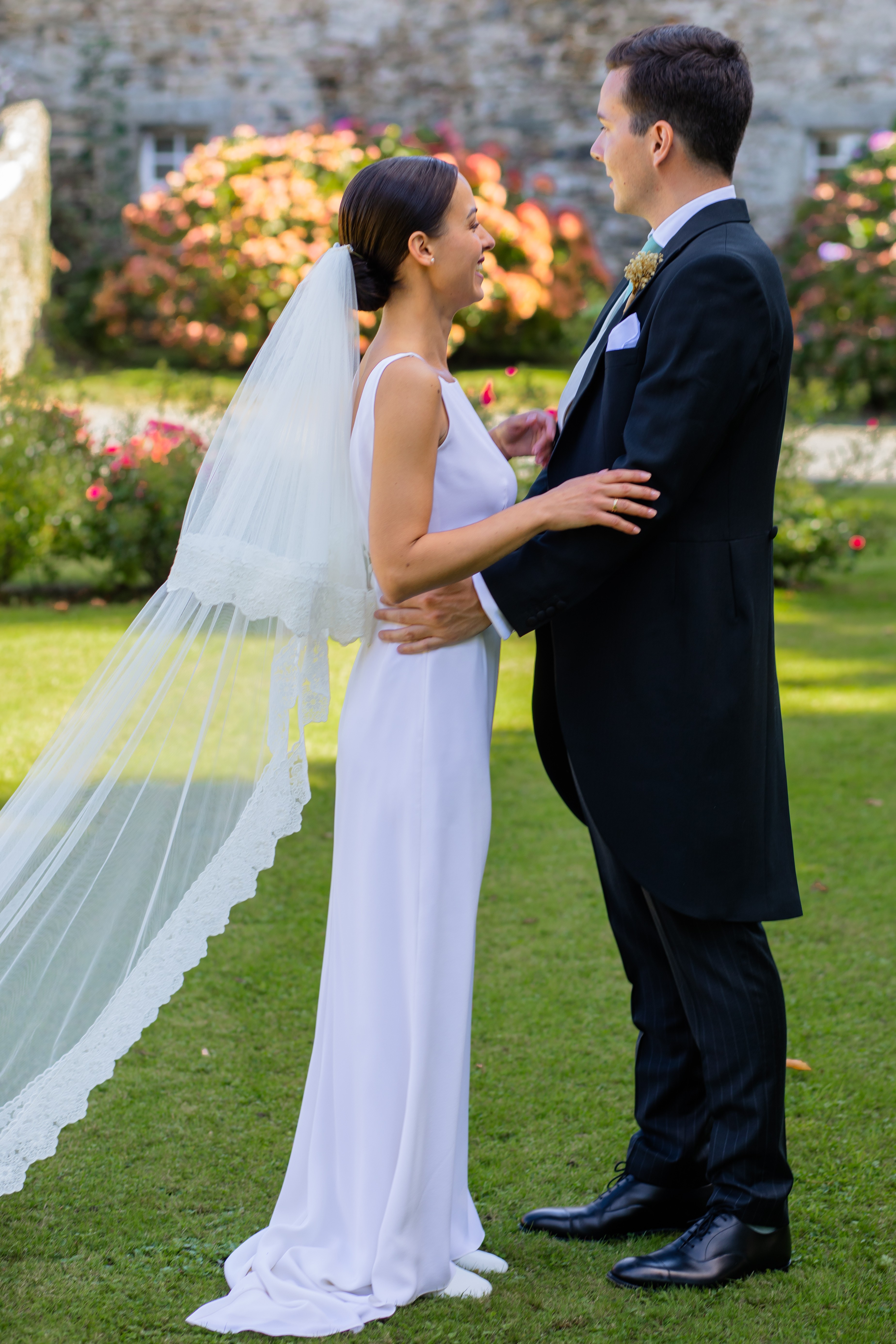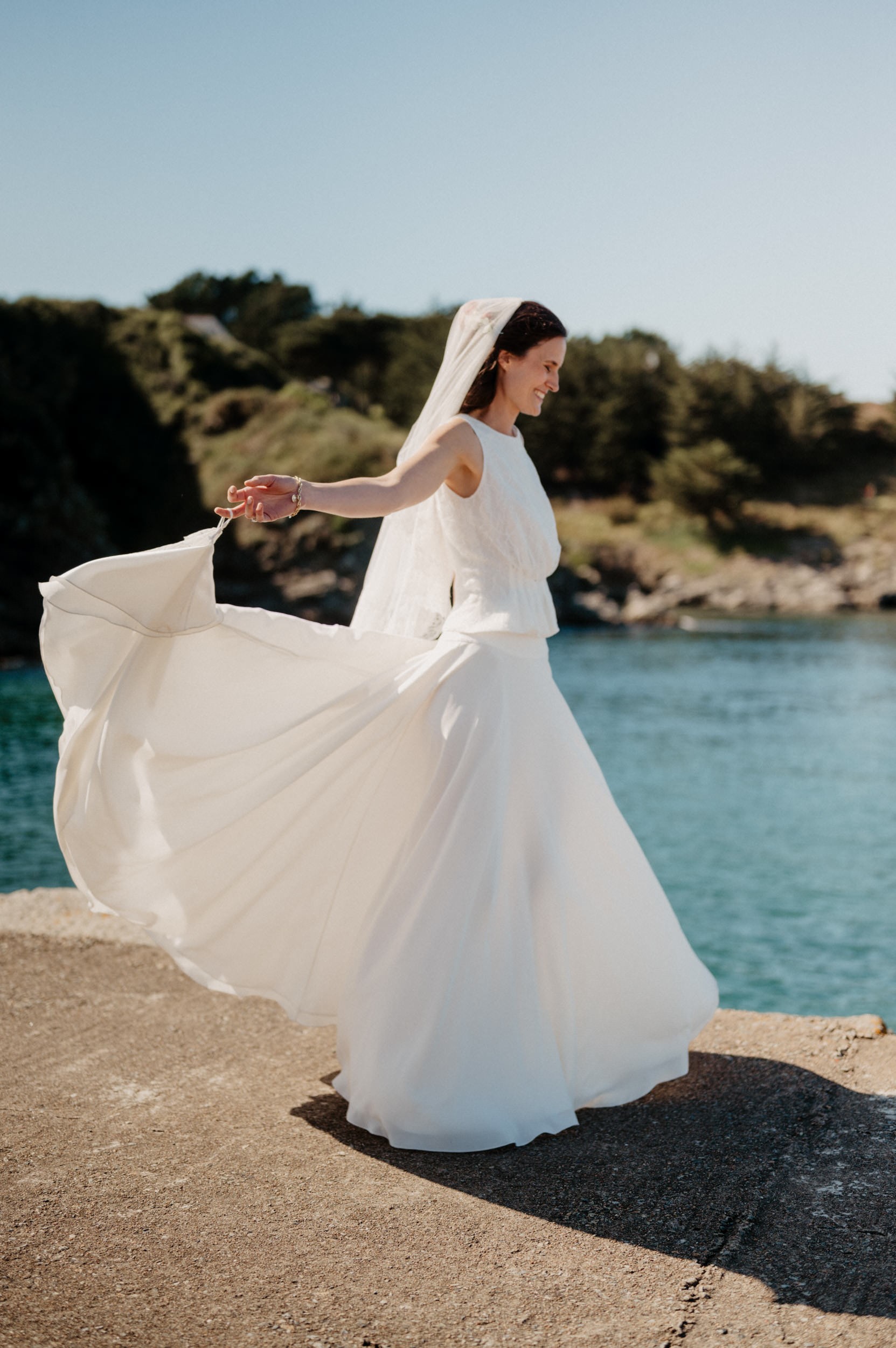 Pour son mariage, Delphine porte le modèle Naïade en dentelle de Calais ivoire.