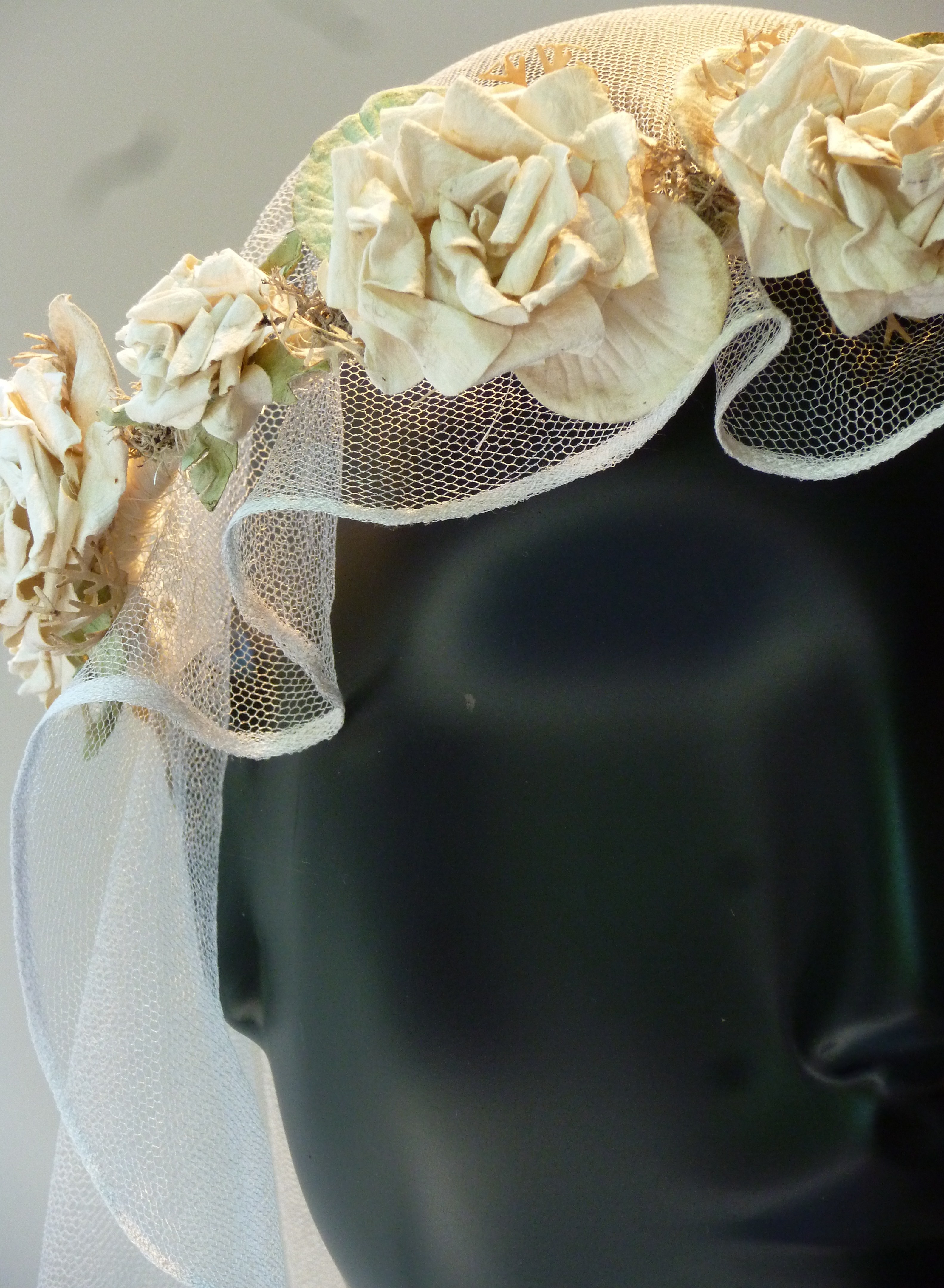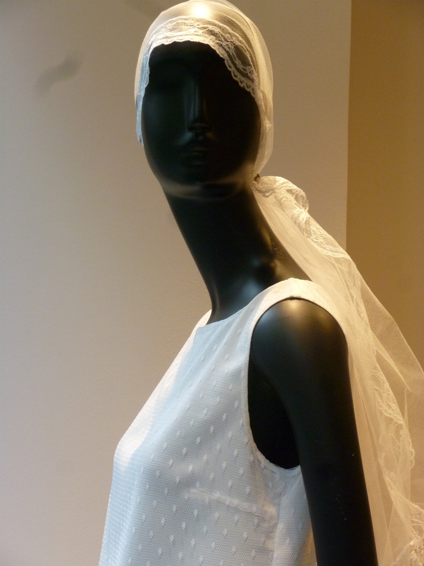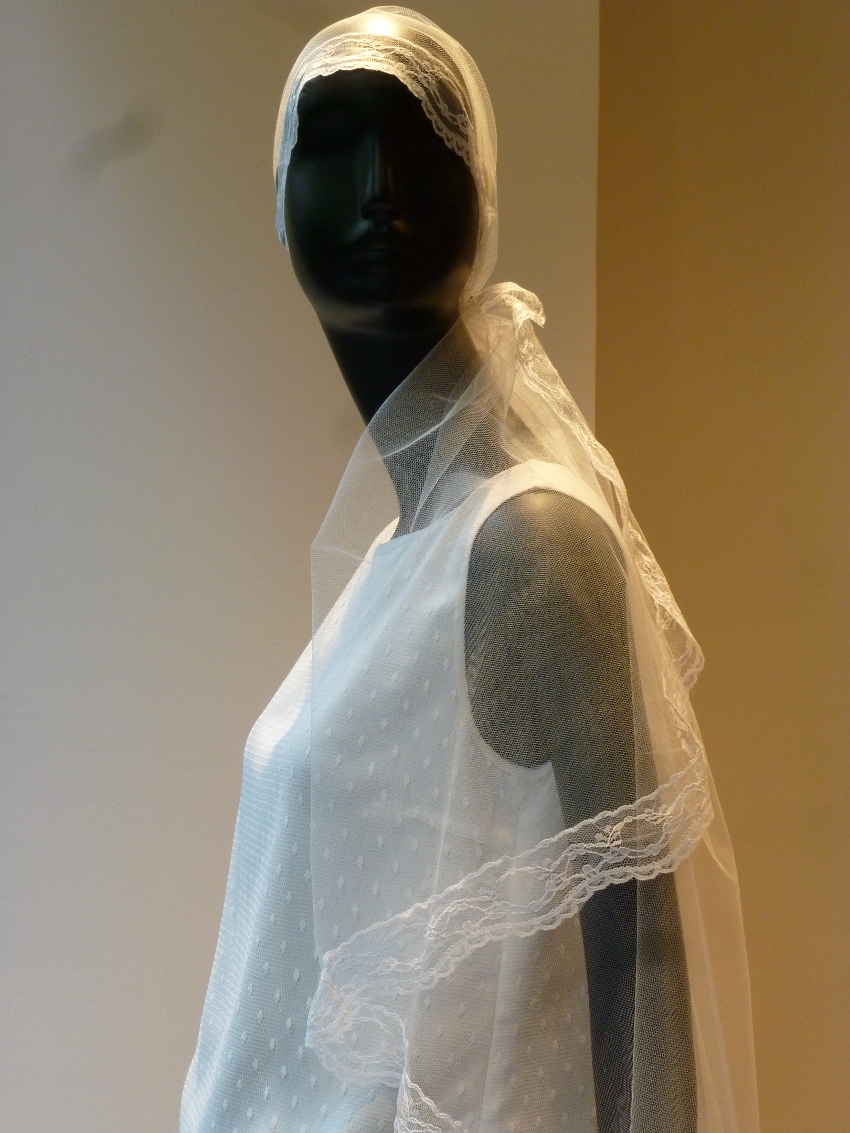 Robe en mousseline de soie et dentelle de Calais, voile bordé de dentelle