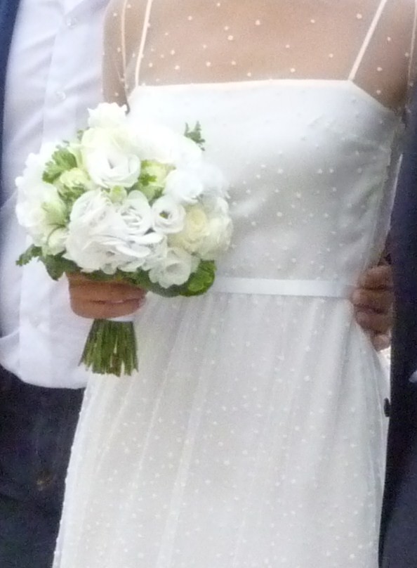 Pour un mariage elle avait choisi le modèle Naiade en organdi de coton et fleurs tissées!