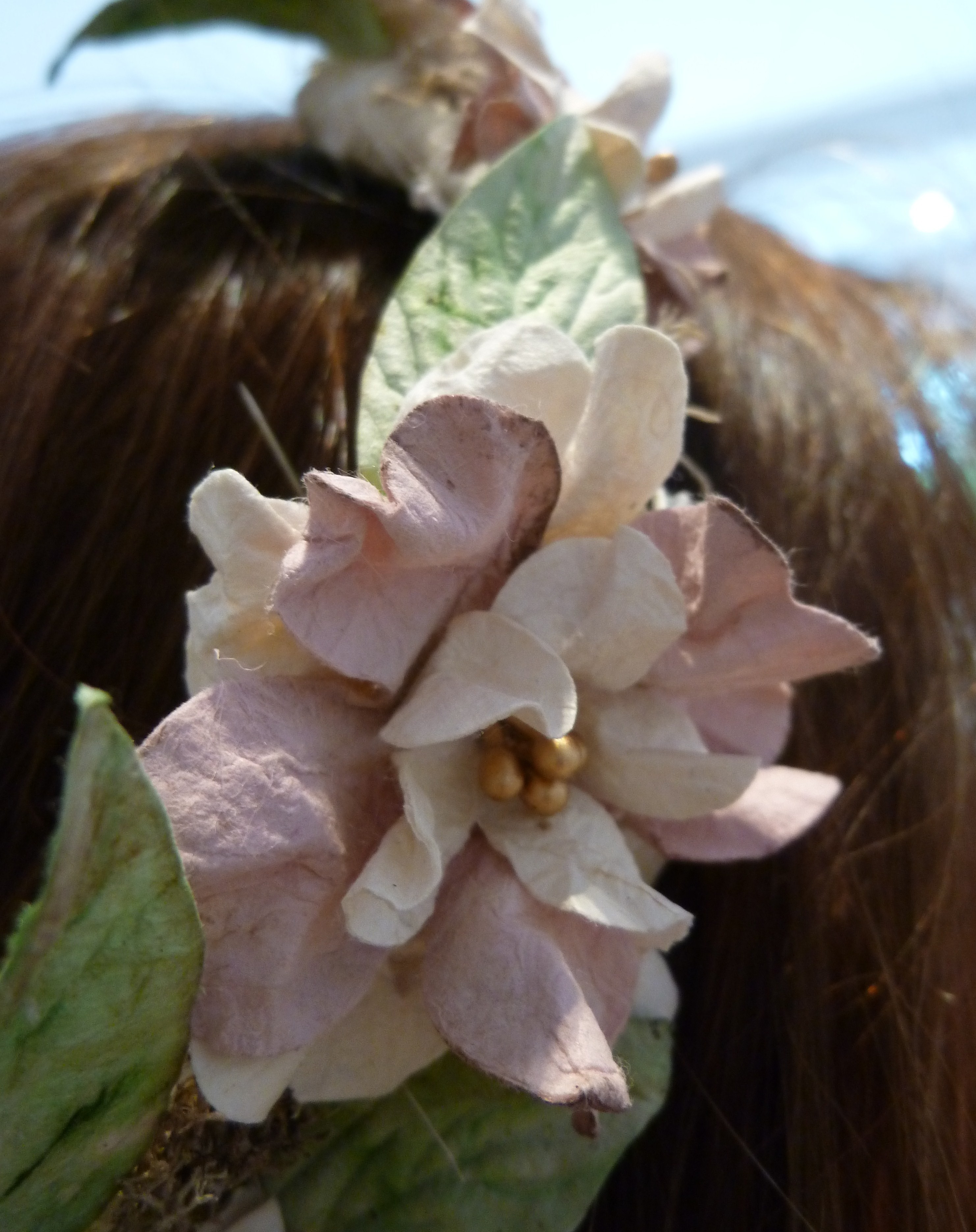 Robe en dentelle de Calais et couronne en fleurs des champs!