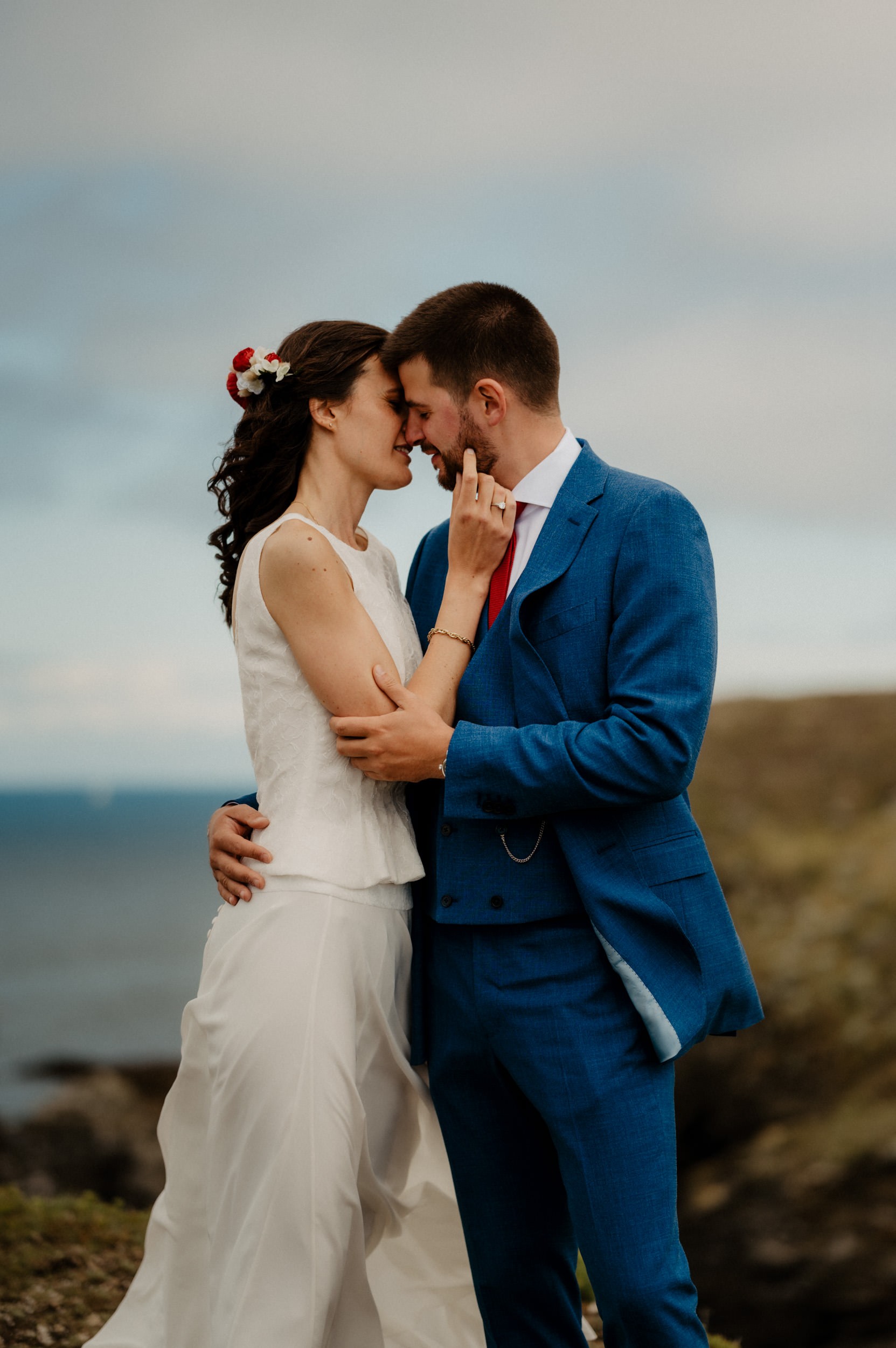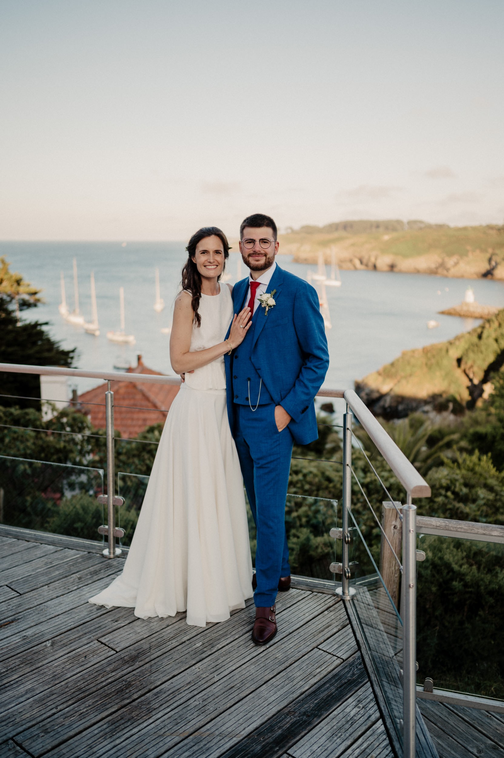 Kaouter s'est décidée en 24h! Elle a eu un coup de coeur pour le modèle 'Greta' de la collection 'Brume' en crêpe lourd ivoire et tulle rebrodé.