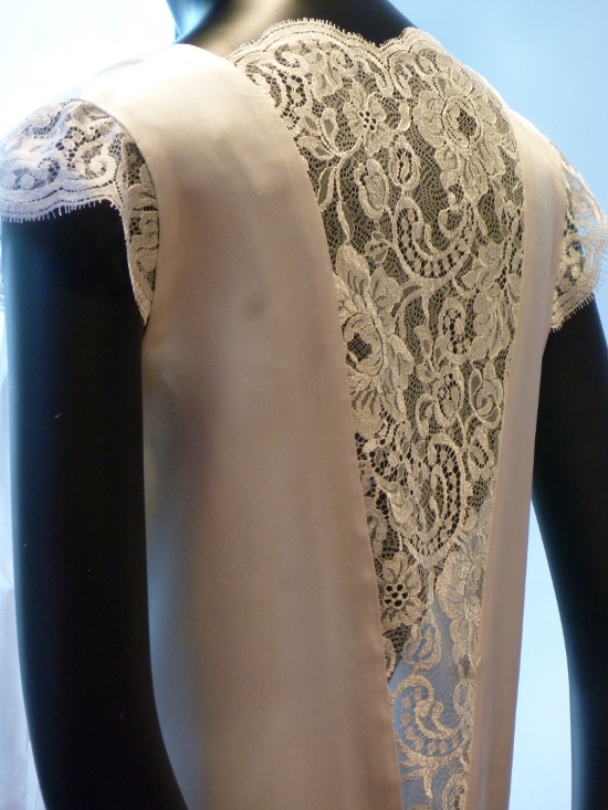 Pour Stéphanie, création d une robe en dentelle entièrement doublée de soie