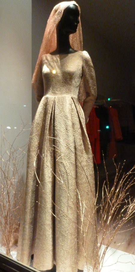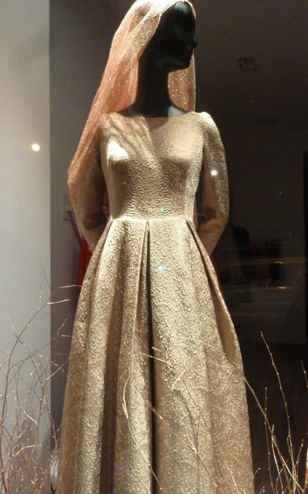 Pour se marier, ou pour aller au bal, robe en broché or. Un air de Peau d'Âne flotte sur cette robe qui fait rêver.