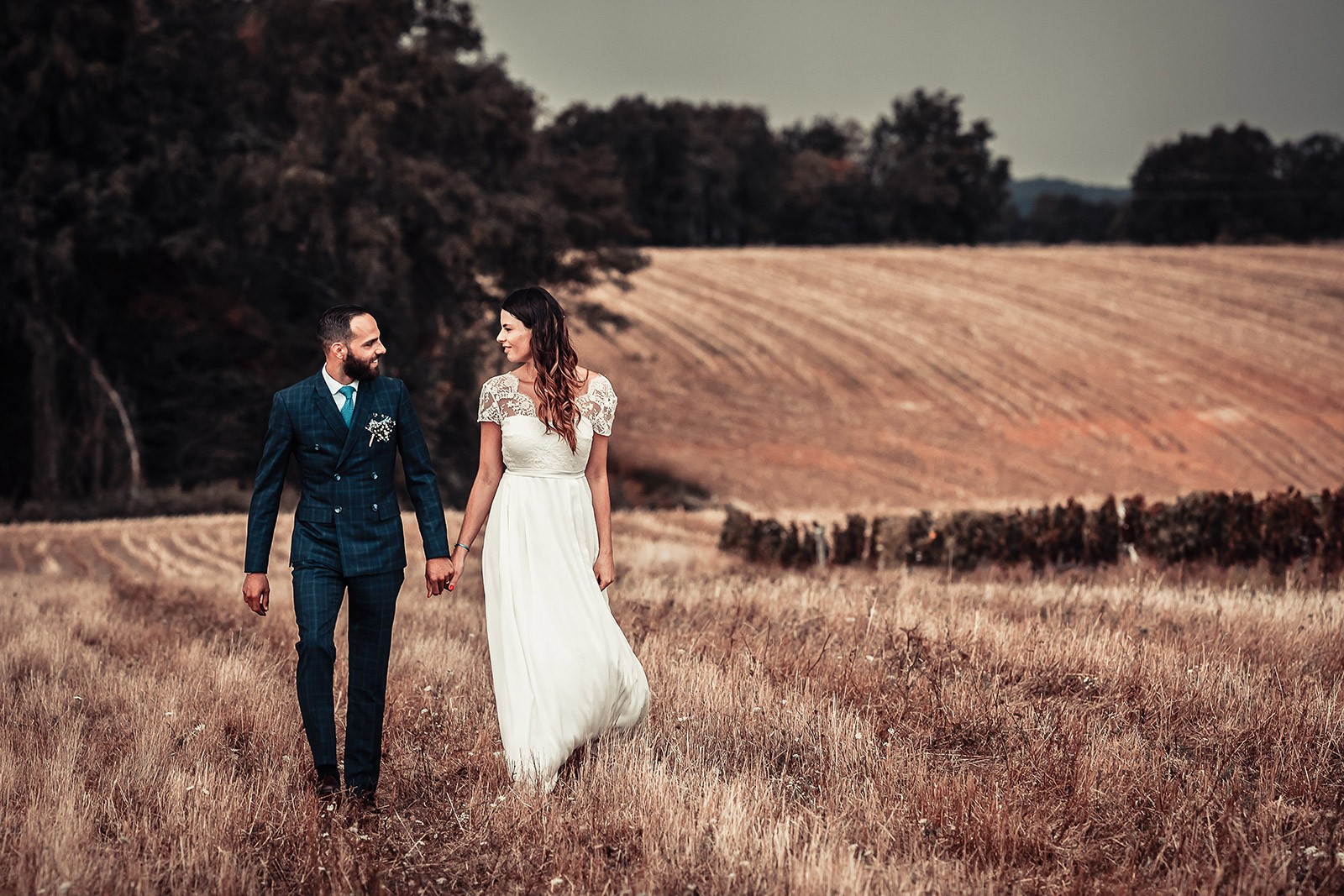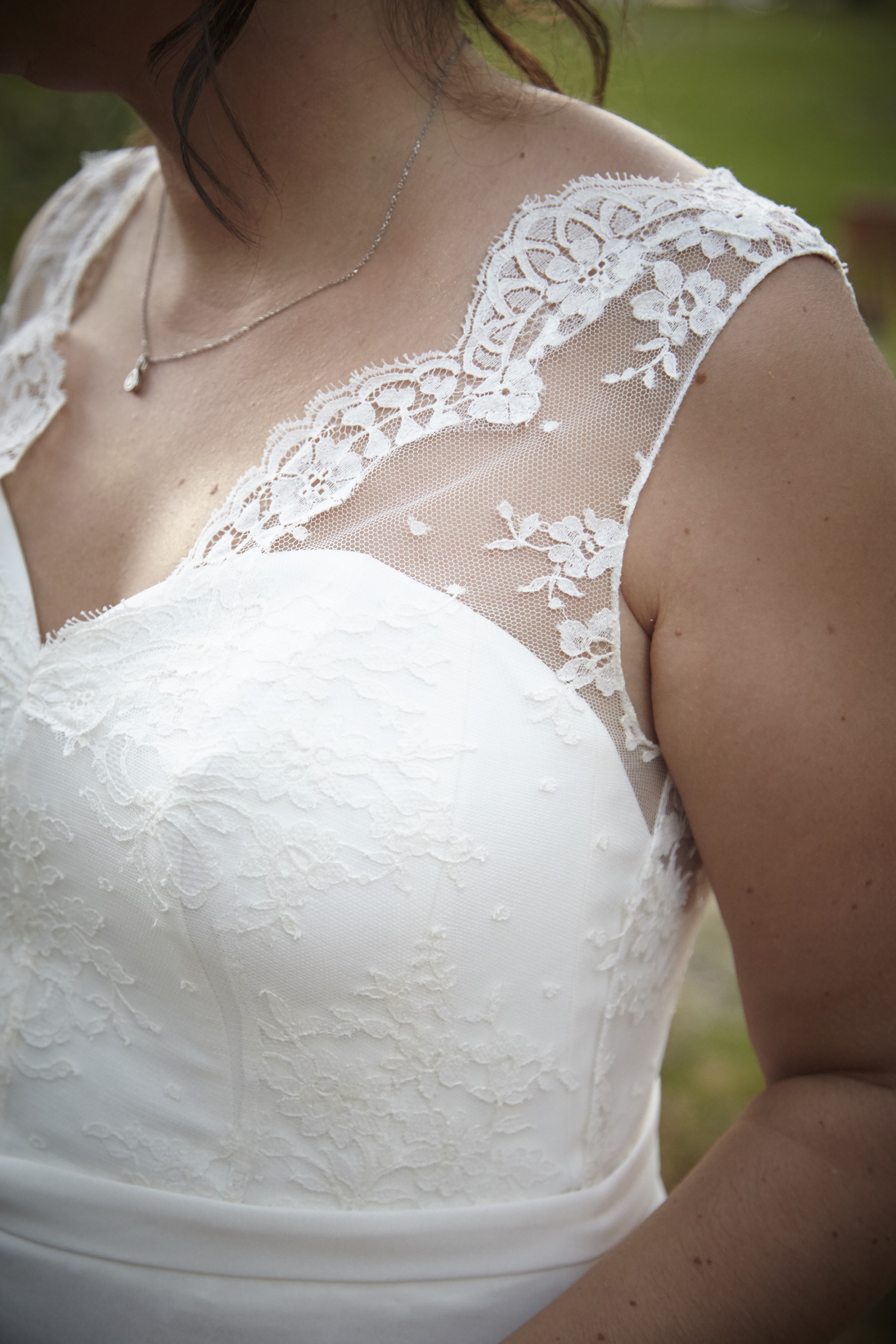 Pour son mariage, Delphine porte le modèle Naïade en dentelle de Calais ivoire.