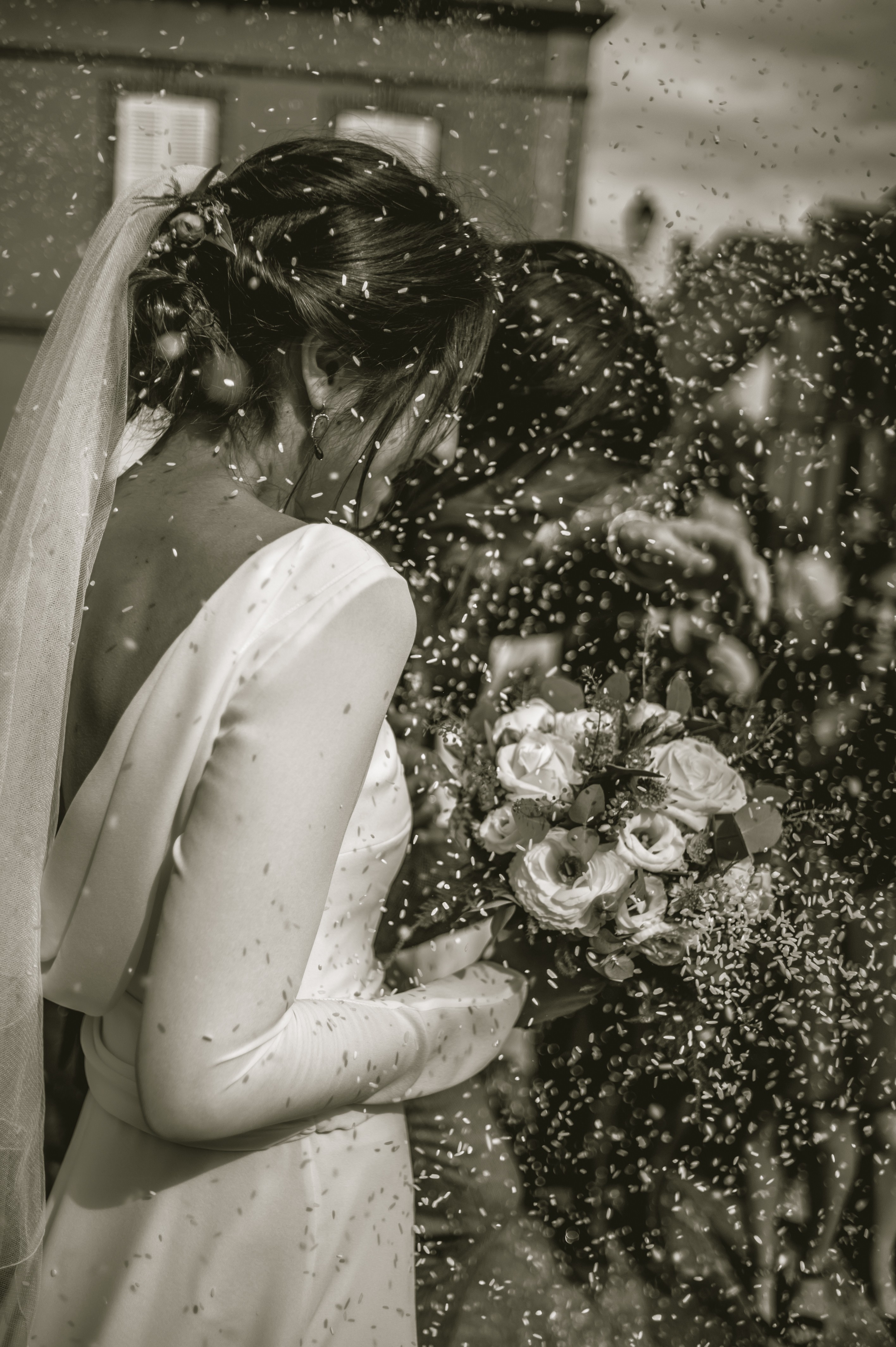 intempéries....Elle portait le modèle Thétis en guipure ivoire.